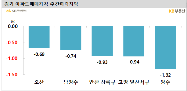 [매매 경기·인천] 경기도는 전주 대비 -0.41%, 인천 -0.36% 하락