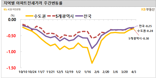 전세 -0.33%(3/27) → -0.30%(4/3)
